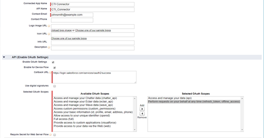 Note: Allow from 2-10 minutes for your changes to take effect on the Salesforce.com server before using the connected app.